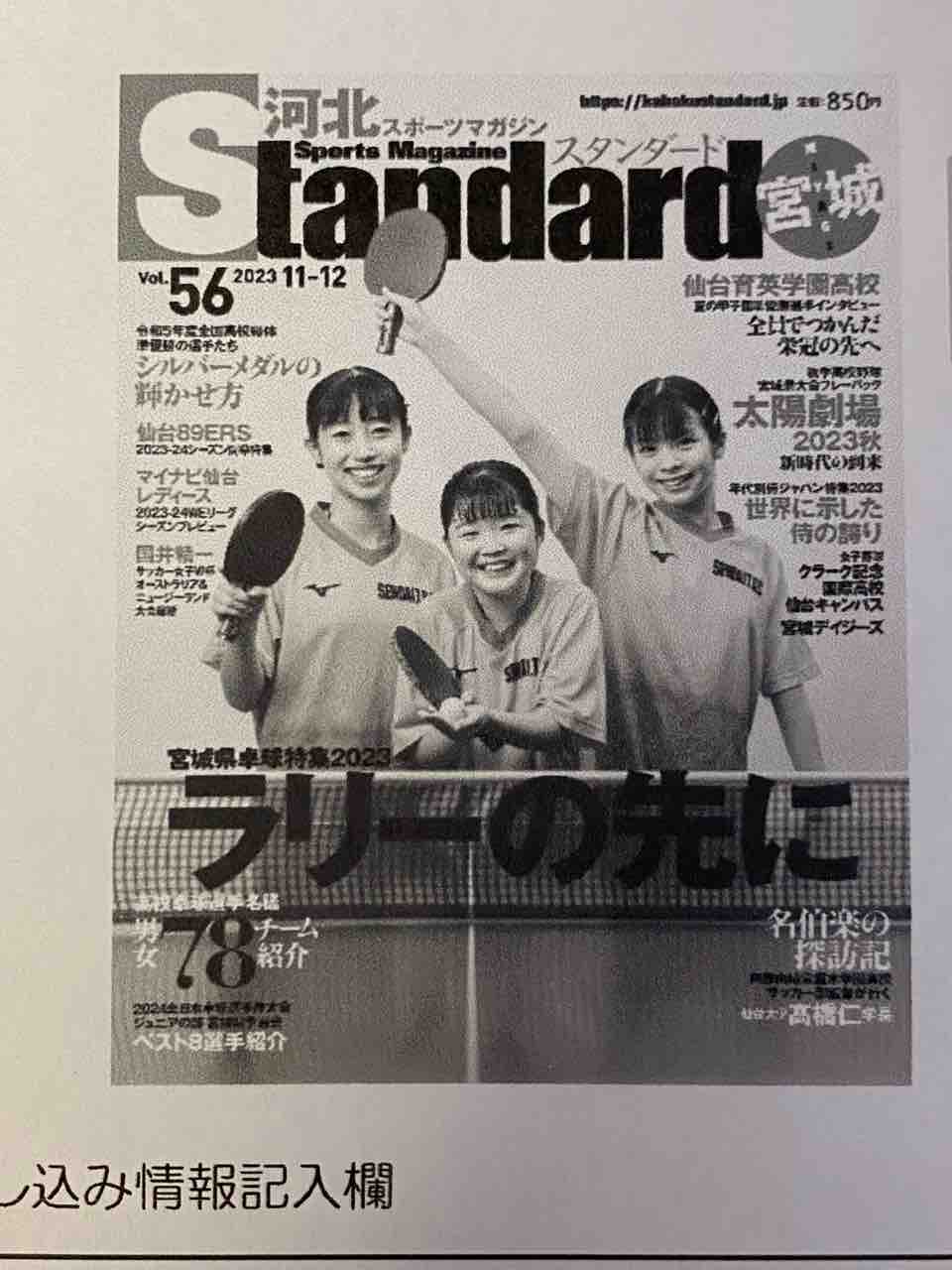 56号は宮城県の高校卓球、全日本ジュニア予選の特集が掲載されてます